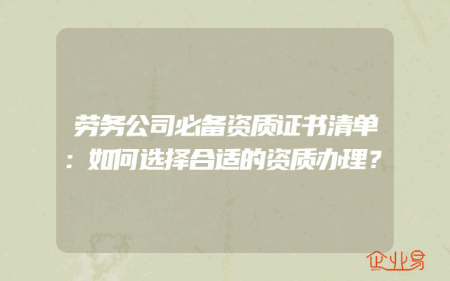 - 劳务公司必备资质证书清单:如何选择合适的资质办理?