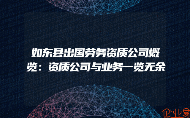 - 如东县出国劳务资质公司概览:资质公司与业务一览无余