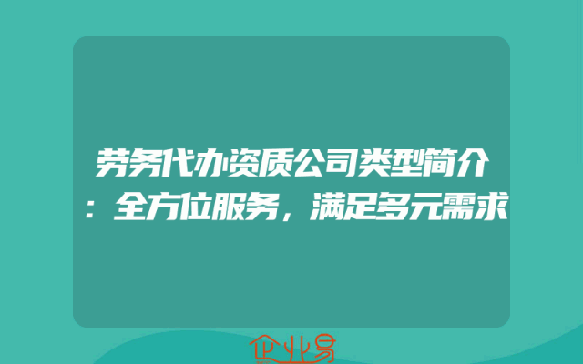 - 劳务代办资质公司类型简介:全方位服务,满足多元需求