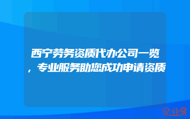 - 西宁劳务资质代办公司一览,专业服务助您成功申请资质