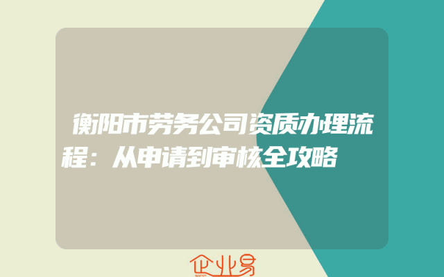 - 衡阳市劳务公司资质办理流程:从申请到审核全攻略