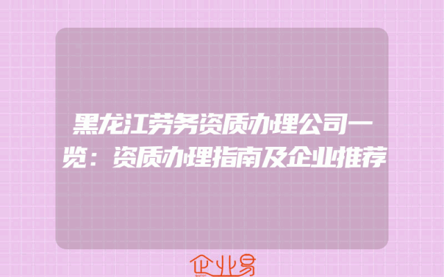 - 黑龙江劳务资质办理公司一览:资质办理指南及企业推荐