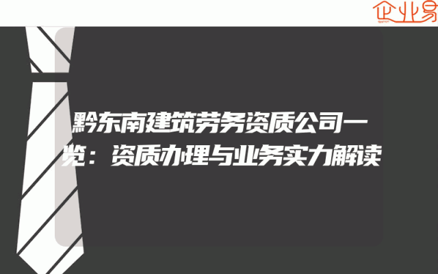 - 黔东南建筑劳务资质公司一览:资质办理与业务实力解读
