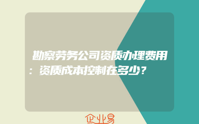 - 勘察劳务公司资质办理费用:资质成本控制在多少?