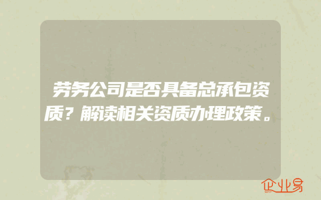 - 劳务公司是否具备总承包资质?解读相关资质办理政策。