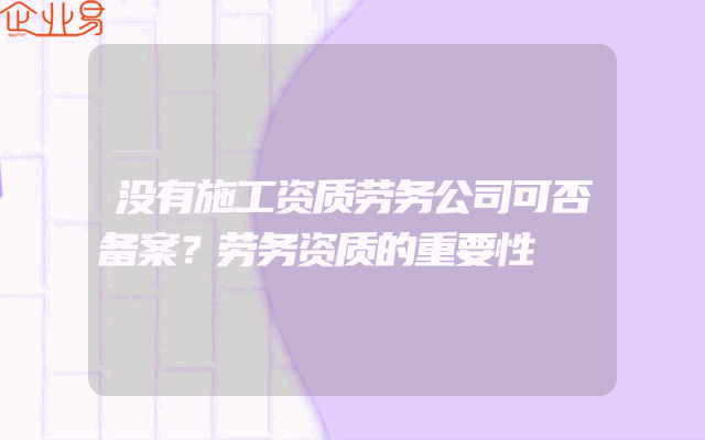- 没有施工资质劳务公司可否备案?劳务资质的重要性