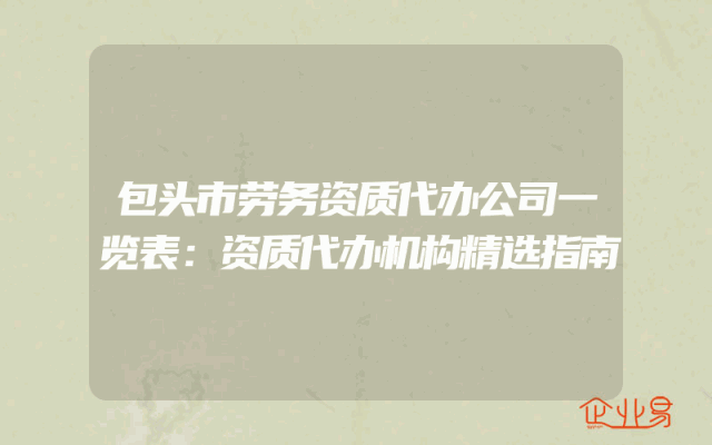 - 包头市劳务资质代办公司一览表:资质代办机构精选指南