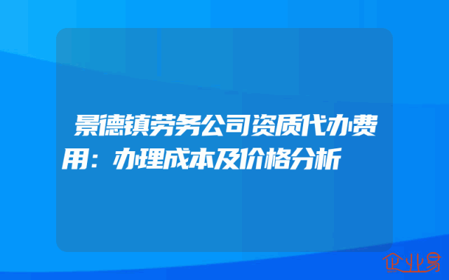 - 景德镇劳务公司资质代办费用:办理成本及价格分析