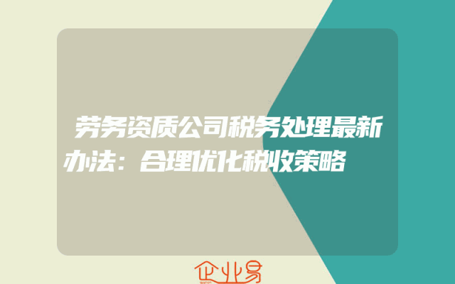 - 劳务资质公司税务处理最新办法:合理优化税收策略