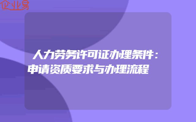 - 人力劳务许可证办理条件:申请资质要求与办理流程