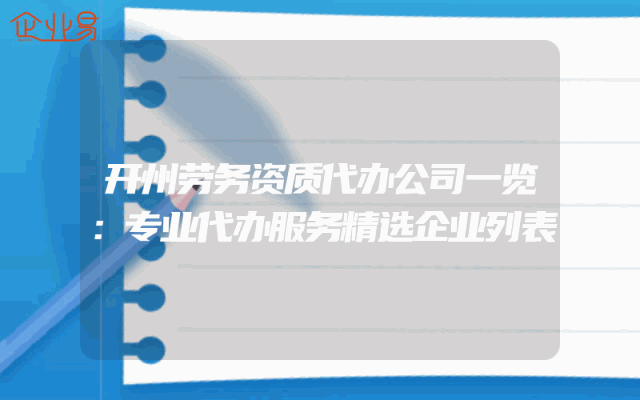 - 开州劳务资质代办公司一览:专业代办服务精选企业列表