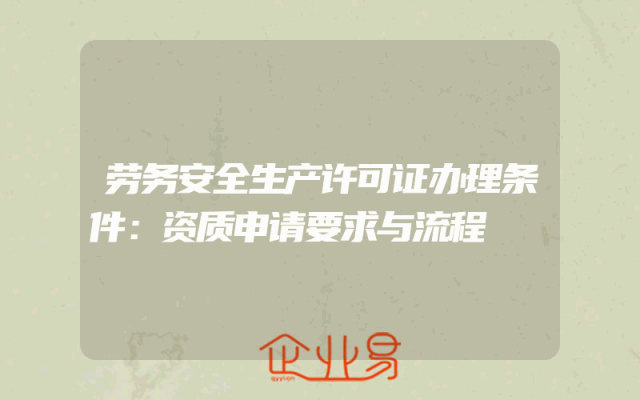 - 劳务安全生产许可证办理条件:资质申请要求与流程