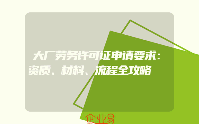 - 大厂劳务许可证申请要求:资质、材料、流程全攻略