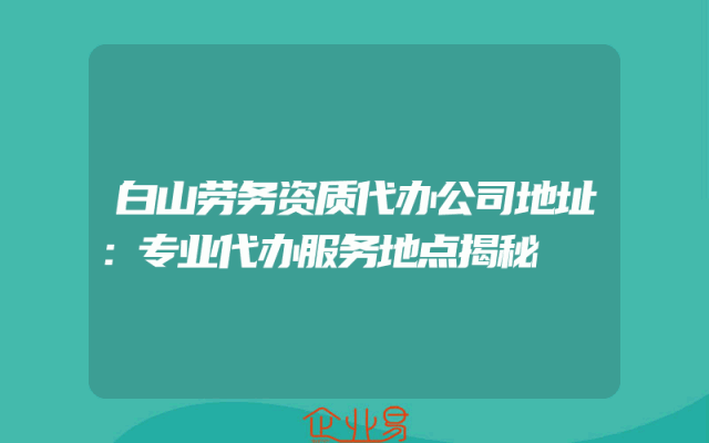 - 白山劳务资质代办公司地址:专业代办服务地点揭秘