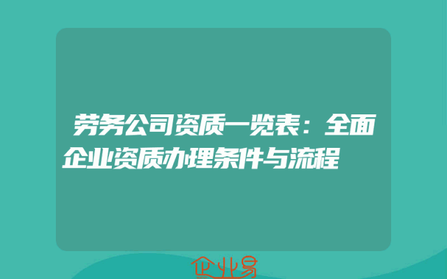 - 劳务公司资质一览表:全面企业资质办理条件与流程