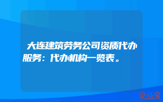 - 大连建筑劳务公司资质代办服务:代办机构一览表。