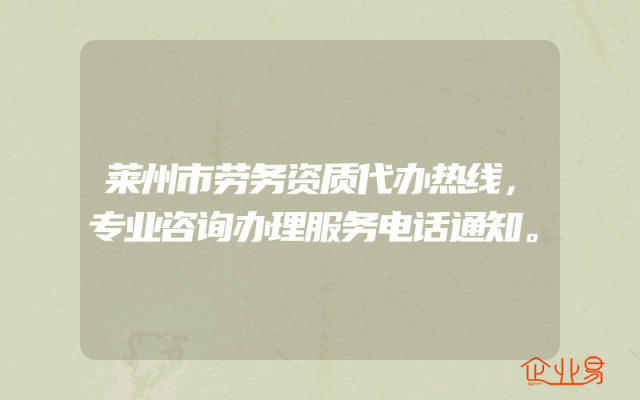 - 莱州市劳务资质代办热线,专业咨询办理服务电话通知。