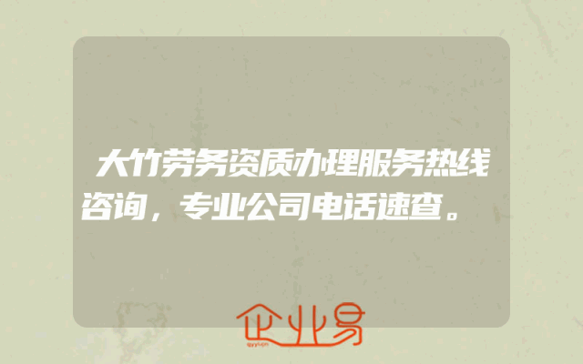 - 大竹劳务资质办理服务热线咨询,专业公司电话速查。