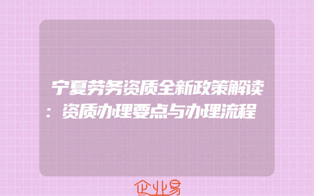 - 宁夏劳务资质全新政策解读:资质办理要点与办理流程