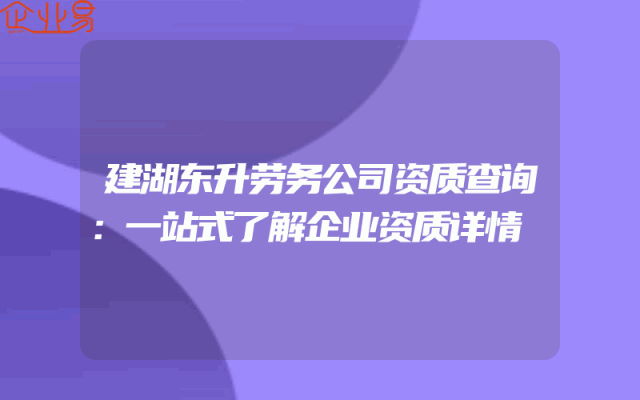 - 建湖东升劳务公司资质查询:一站式了解企业资质详情