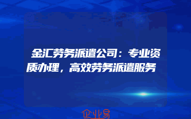 - 金汇劳务派遣公司:专业资质办理,高效劳务派遣服务