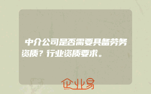 - 中介公司是否需要具备劳务资质?行业资质要求。