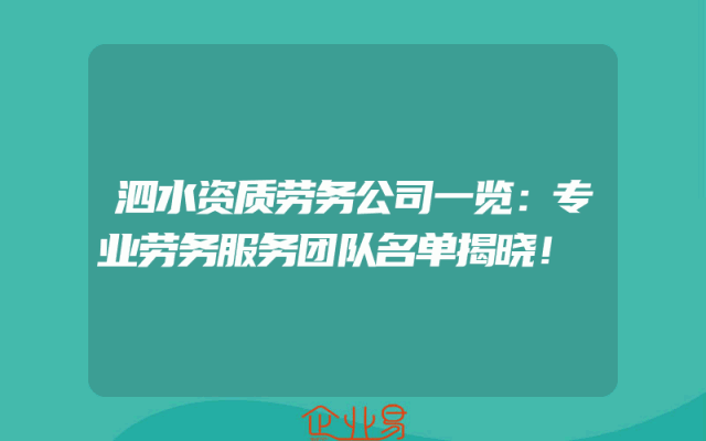 - 泗水资质劳务公司一览:专业劳务服务团队名单揭晓!