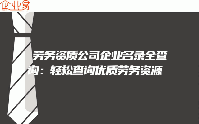 - 劳务资质公司企业名录全查询:轻松查询优质劳务资源