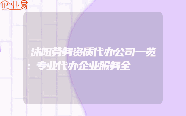 - 沭阳劳务资质代办公司一览:专业代办企业服务全