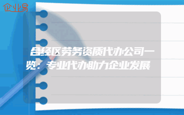 - 合经区劳务资质代办公司一览:专业代办助力企业发展