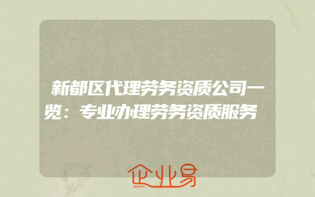 - 新都区代理劳务资质公司一览:专业办理劳务资质服务