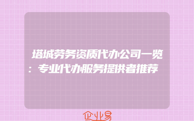 - 塔城劳务资质代办公司一览:专业代办服务提供者推荐