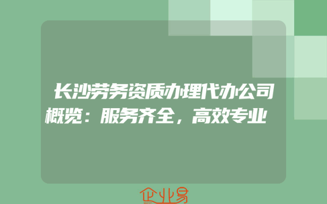 - 长沙劳务资质办理代办公司概览:服务齐全,高效专业