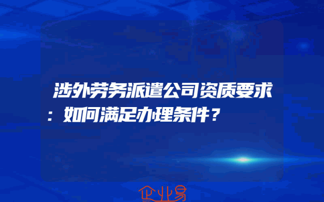 - 涉外劳务派遣公司资质要求:如何满足办理条件?
