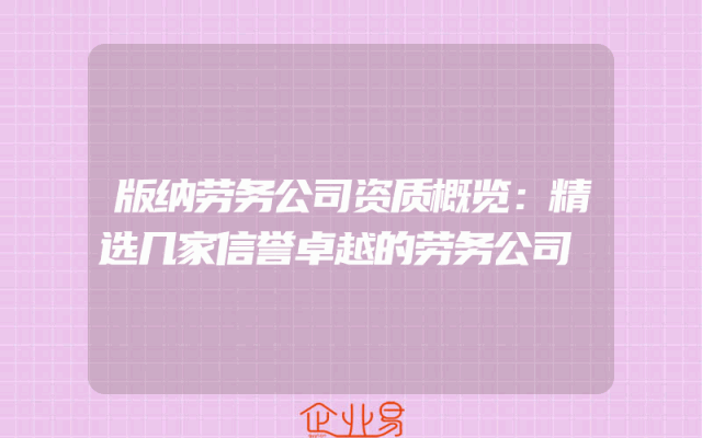 - 版纳劳务公司资质概览:精选几家信誉卓越的劳务公司