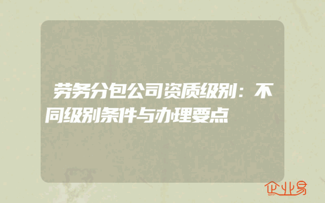 - 劳务分包公司资质级别:不同级别条件与办理要点