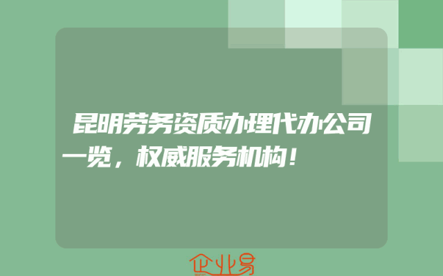 - 昆明劳务资质办理代办公司一览,权威服务机构!