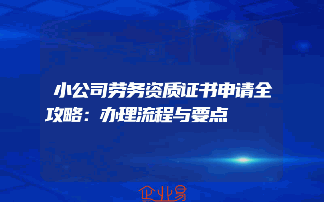- 小公司劳务资质证书申请全攻略:办理流程与要点