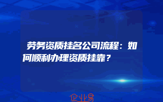 - 劳务资质挂名公司流程:如何顺利办理资质挂靠?