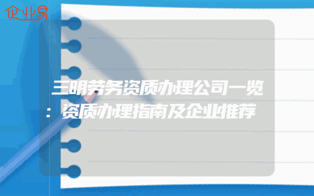 - 三明劳务资质办理公司一览:资质办理指南及企业推荐