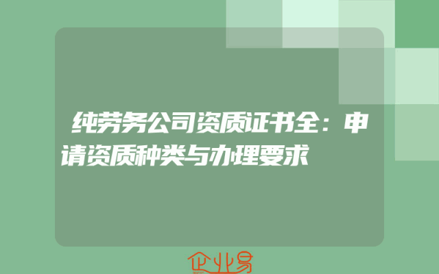 - 纯劳务公司资质证书全:申请资质种类与办理要求