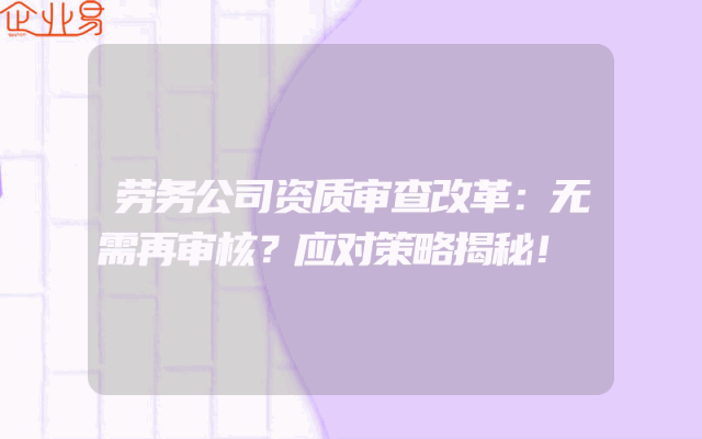 - 劳务公司资质审查改革:无需再审核?应对策略揭秘!