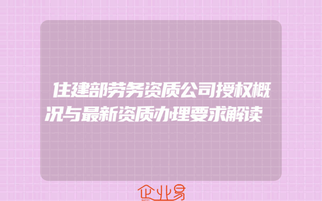 - 住建部劳务资质公司授权概况与最新资质办理要求解读