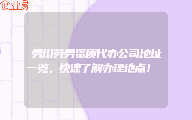 - 务川劳务资质代办公司地址一览,快速了解办理地点!