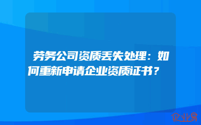 - 劳务公司资质丢失处理:如何重新申请企业资质证书?