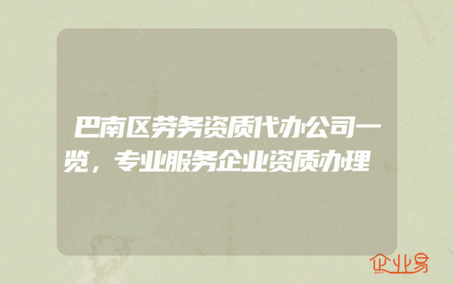 - 巴南区劳务资质代办公司一览,专业服务企业资质办理