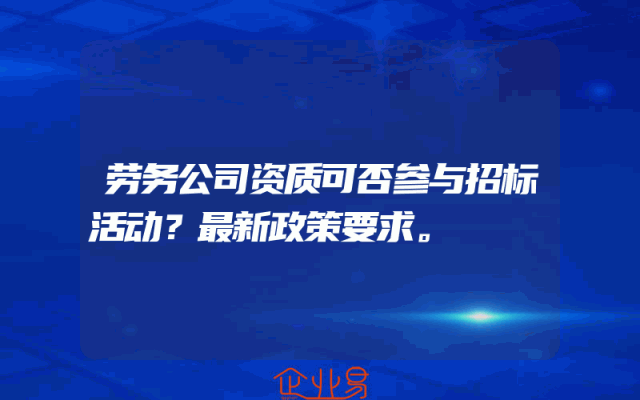 - 劳务公司资质可否参与招标活动?最新政策要求。