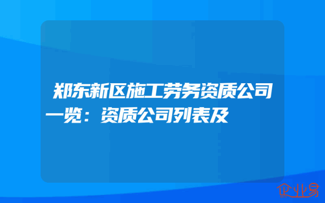 - 郑东新区施工劳务资质公司一览:资质公司列表及