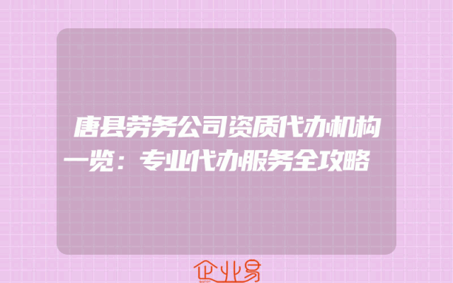 - 唐县劳务公司资质代办机构一览:专业代办服务全攻略