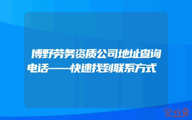 - 博野劳务资质公司地址查询电话——快速找到联系方式